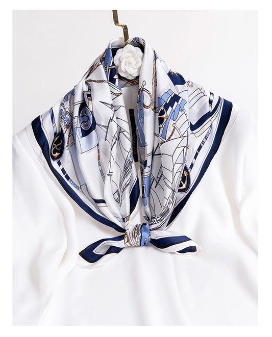 BCHICU Nautical Travel - Blue 90cm*90cm A Large Square 100% Silk Scarves