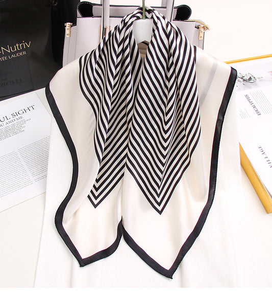 BCHICU Temperament Stripe White 65cm*65cm 100% Silk Small Square Scarf Small Neckerchief with Suit